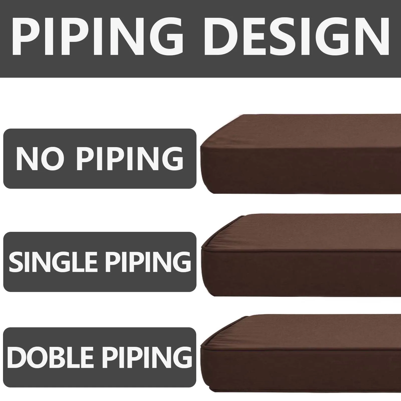 Fixing Method: You can select the buckle and the non-slip bottom to ensure that the cushion does not move at will.If you don’t select, the default is the non-slip bottom and buckle.And you can choose whether to add it piping.